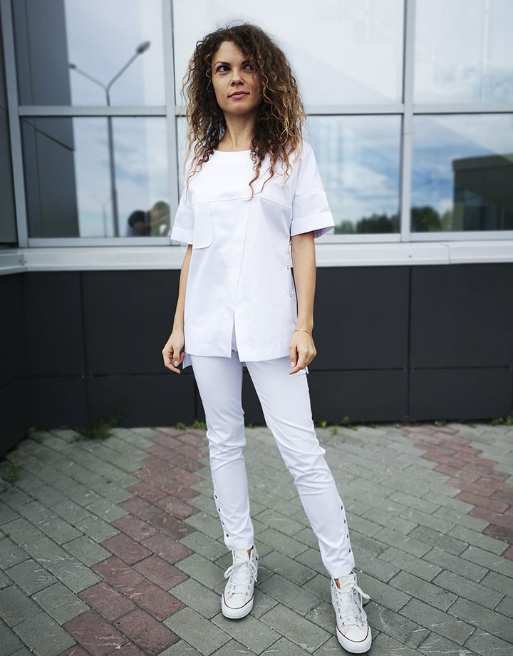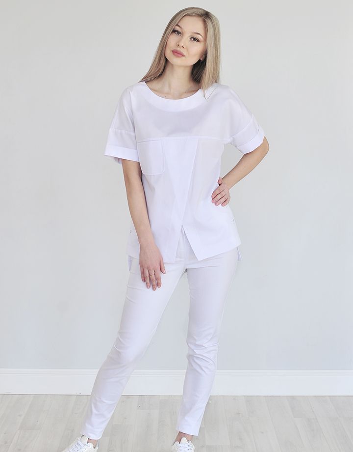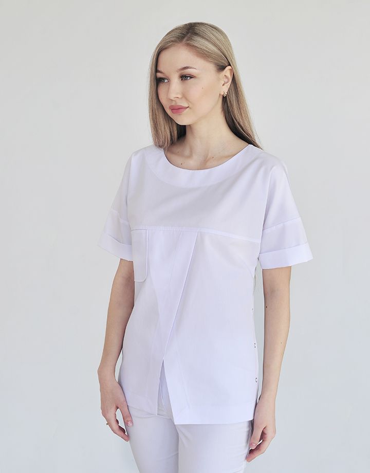Блуза "Хайтек" прекрасный вариант для любительниц интересных решений. Асиммметричные детали, прямой крой, кулиса по спинке-это незабываемый образ, комфорт и удобство, эффект скользящего приталивания, легкость и стройность силуэта. Блуза безпроигрышный вариант на любой тип фигуры.